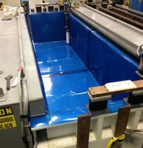 Applications for Witt drop in liners include plating or metal finishing tanks, galvanizing tanks, anodizing tanks, chemical process tanks, and chemical storage tanks. Applications are also found in water treatment tanks/pits, cooling towers, and potable water tanks. Flexible liners are often the solution for tanks that aren’t well suited to a bonded liner or applied coating.